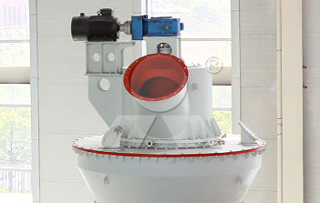 主電機通過減速機帶動磨盤轉(zhuǎn)動,同時風(fēng)從進風(fēng)口進入磨機,物料經(jīng)螺旋給料機下料口落在磨盤中央,在離心力的作用下,物料從磨盤中央向邊緣均勻移動,經(jīng)過磨盤上的粉磨輥道區(qū)域時,受到磨輥的碾壓,大塊物料直接被壓碎,細粒物料受擠壓后形成料床進行粒間粉碎。被粉碎的物料繼續(xù)向磨盤邊緣移動,直到被風(fēng)環(huán)處的強氣流帶走,而較大的顆粒物料又重新掉落到磨盤上繼續(xù)粉碎,氣流中的物料經(jīng)過上部的分離器時,在分離器葉片的作用下,粗顆粒重新回到磨盤上粉磨,合格的細粉隨氣流一起出磨,被系統(tǒng)的集粉器收集,被收集到的粉料即為超細立磨磨出的產(chǎn)品。混入物料的鐵塊等雜物隨物料運動到磨盤邊緣時,由于自身重量大而不能被風(fēng)吹起,跌落至磨機下腔被安裝在磨盤底部的刮料板刮入排渣口排出機外。