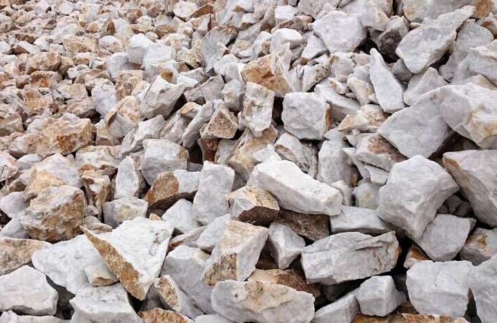大塊石英石經破碎機破碎到能進入磨粉機的入料細度(15mm-50mm)。