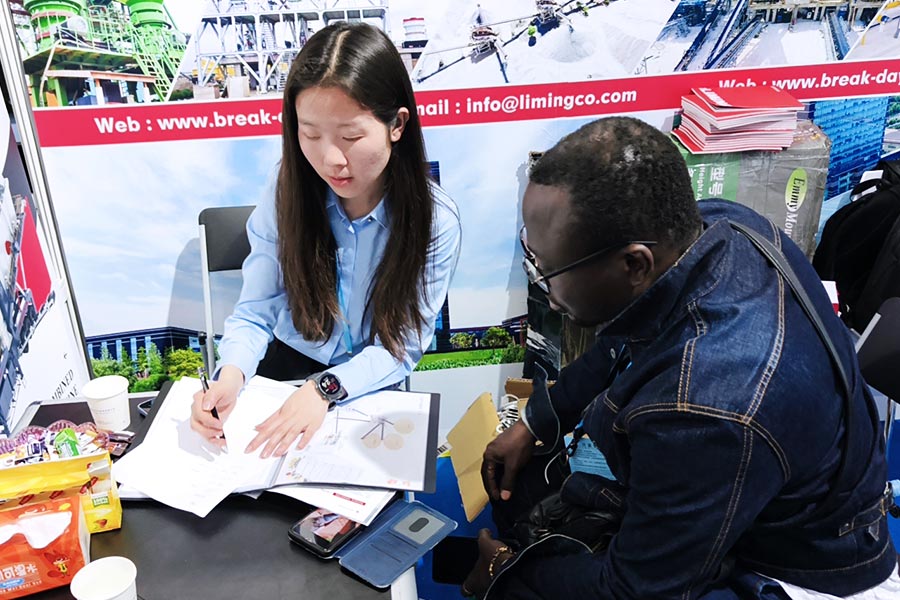會議現場,黎明重工發揮粉磨行業資源優勢,向全球客商和供應商展示黎明智造,為海內外客戶介紹公司在全球180多個國家的項目投放經驗,與全球客商零距離交流我司在非金屬礦制粉、環保脫硫石灰石制備、重鈣加工、煤粉制備等領域的典型案例,詳解生產線配置、工藝設計、維護難題等專業知識。