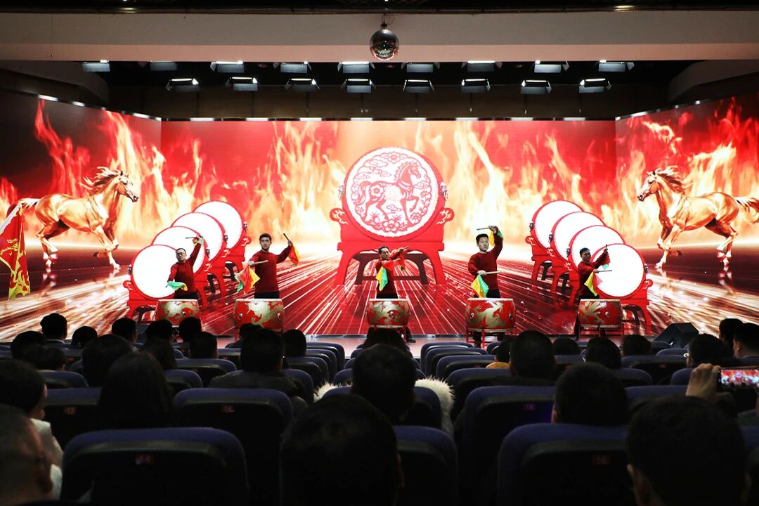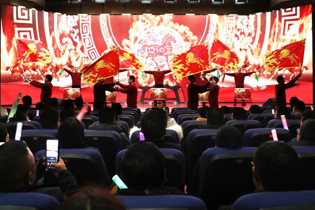 盛會間隙,文藝匯演精彩紛呈,現場氛圍熱烈高漲。銷售團隊執旗擊鼓登場,鼓點鏗鏘、旌旗獵獵,盡顯昂揚銳氣與磅礴氣勢。