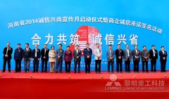 近日,黎明重工受邀參加河南省2014誠信興商宣傳月啟動儀式暨商企誠信承諾簽名活動。在河南省各廳局領導、各誠信經(jīng)營示范單位和誠信企業(yè)家代表、新聞媒體記者等現(xiàn)場簽名與誠信宣言的見...
