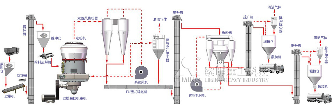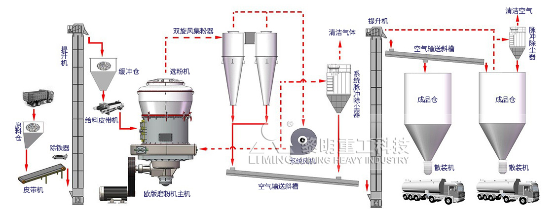 歐版磨制備石灰石粉工藝流程